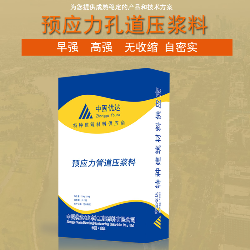 預(yù)應(yīng)力管道壓漿料簡(jiǎn)稱壓漿料,是由優(yōu)質(zhì)水泥基材料、減水劑、微膨脹劑、礦物摻合料配制而成,具有良好的流動(dòng)性,不泌水,不離析,無收縮、微膨脹,強(qiáng)度高,抗?jié)B抗凍、抗腐蝕、粘接度高、綠色環(huán)保等特點(diǎn),不含氧化物、氯化物、亞硫酸鹽和亞硝酸鹽等對(duì)鋼筋有害組份,產(chǎn)品廣泛應(yīng)用于鐵路橋梁、公路橋梁、核電站等大型工程的預(yù)應(yīng)力結(jié)構(gòu)孔道灌漿的施工;各種砼結(jié)構(gòu)接頭處止漏灌漿;空隙填補(bǔ)或修復(fù);地面錨固壓漿、設(shè)備基礎(chǔ)壓漿、底板注漿、梁柱節(jié)點(diǎn)、工程搶修等用途。